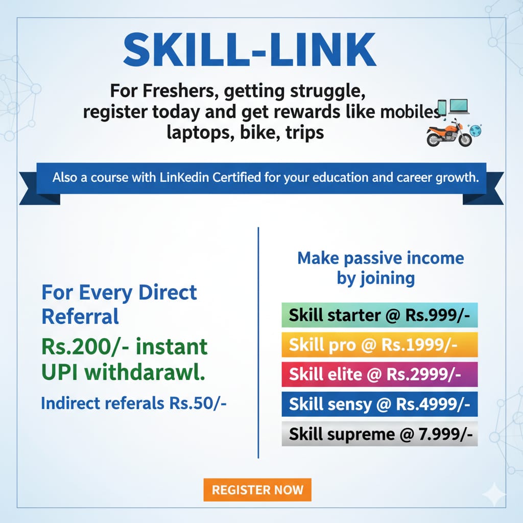 SkillLink is a student-driven learning platform that combines career skills training with a simple, transparent referral income system. Learn trending skills. Refer your friends. Earn rewards ethically.